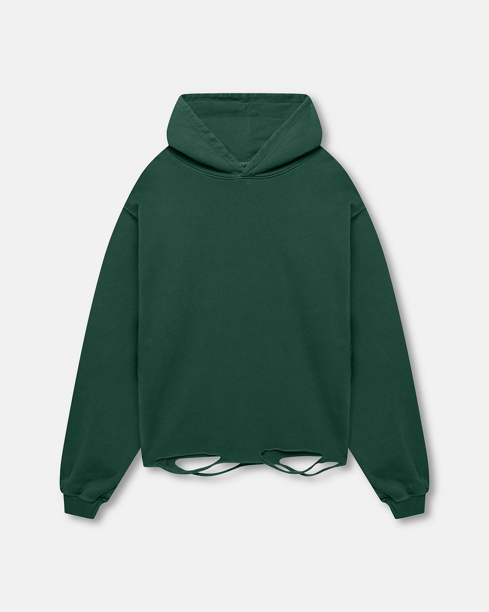 450 GSM 'VINTAGE GREEN' DISTRESSED HOODIE