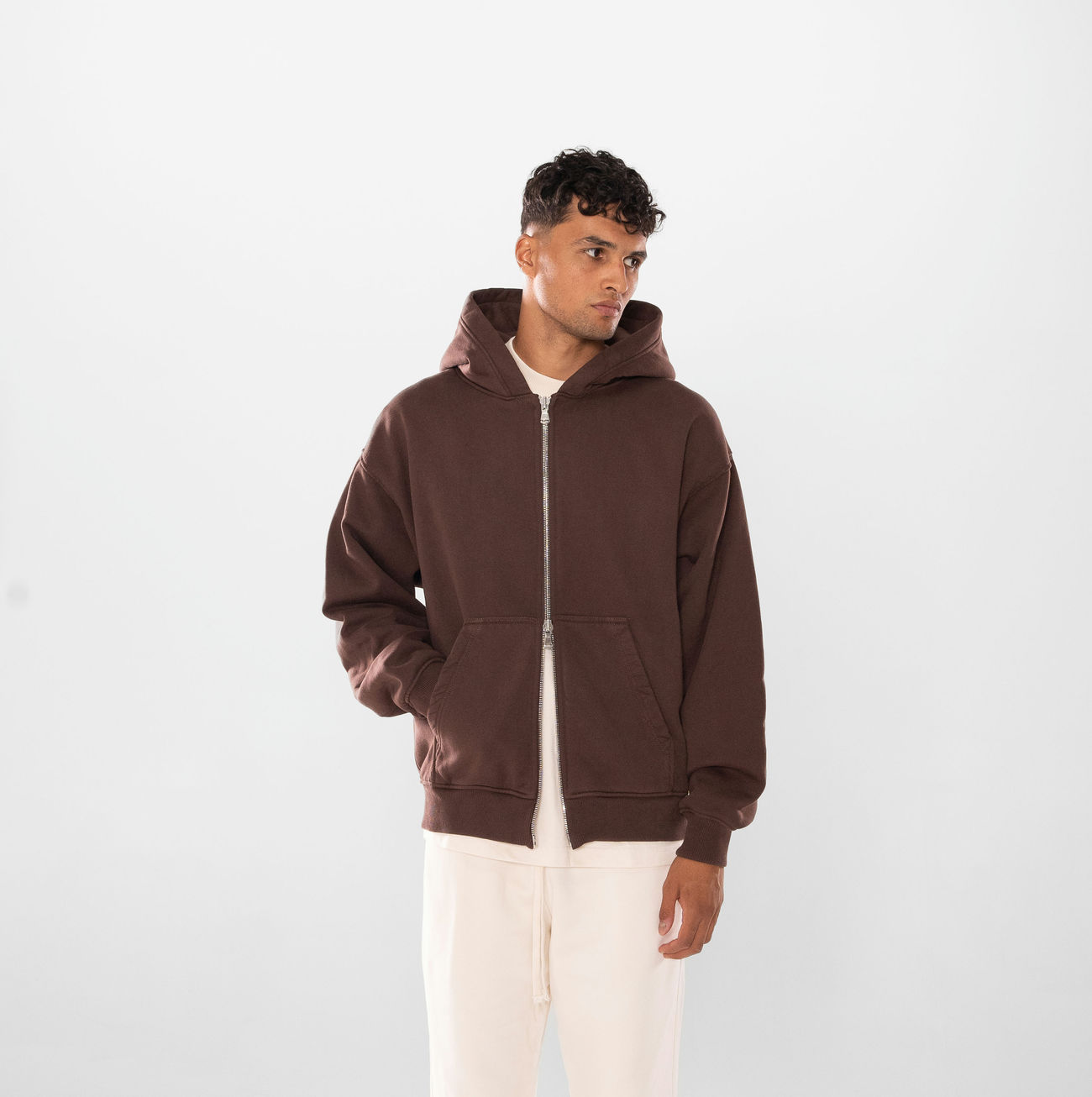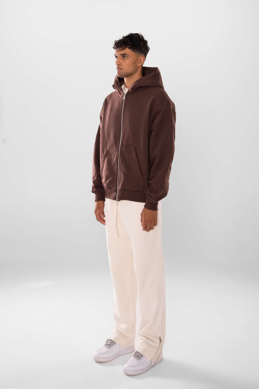 600 GSM WHOLESALE DARK BROWN HOODIE ZIPPER